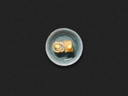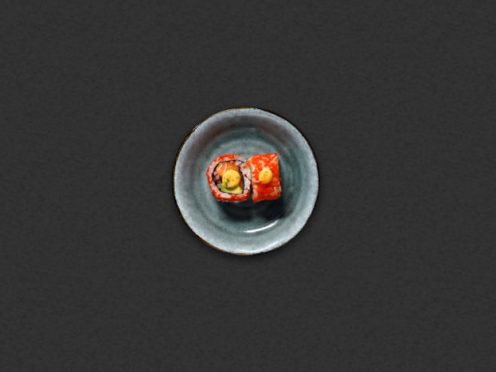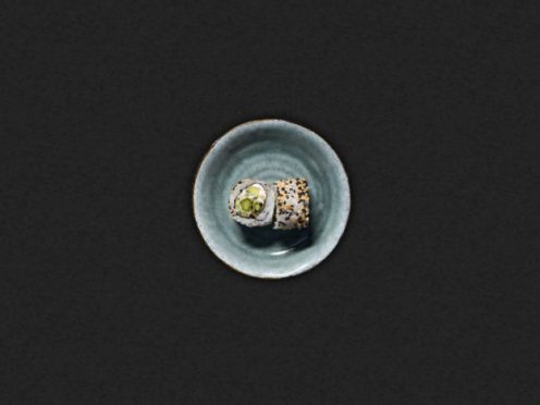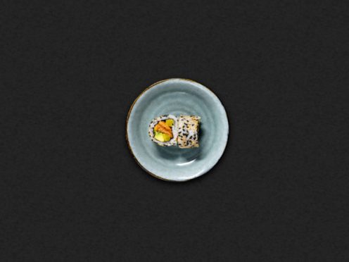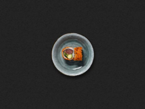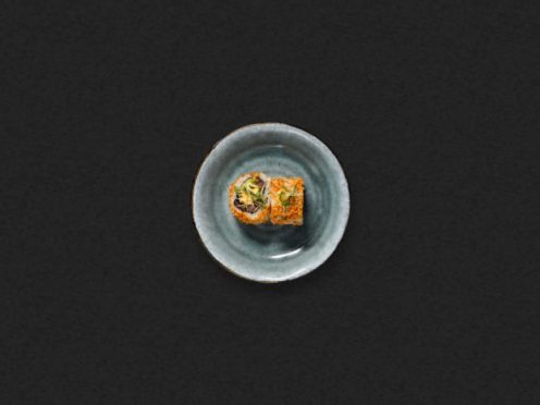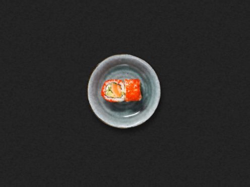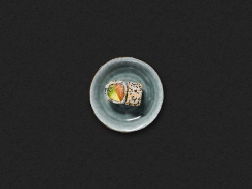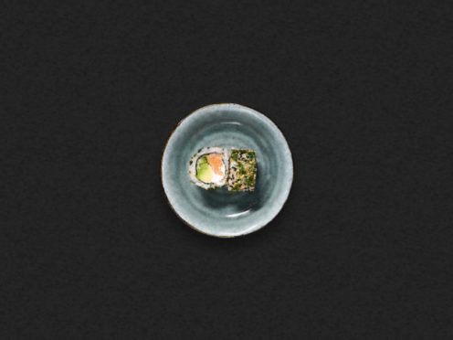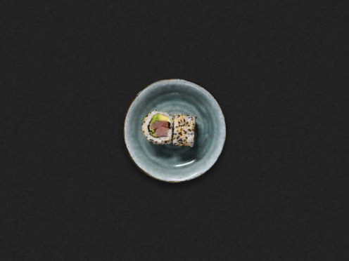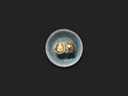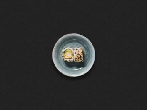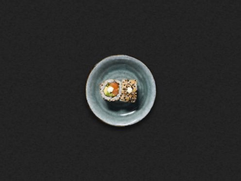 Laks, snekrabbe, avocado, agurk, sesam, tobiko