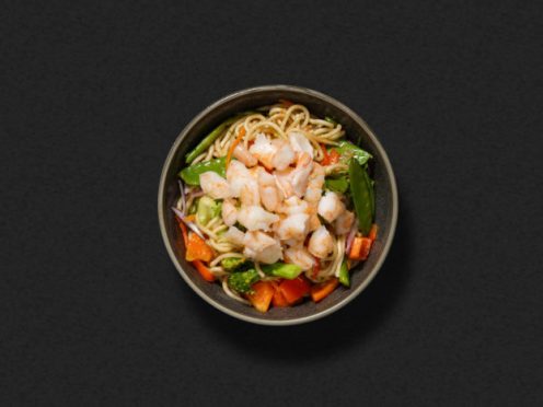 Stegte sobanudler med tigerejer, mix grøntsager, teriyaki sauce