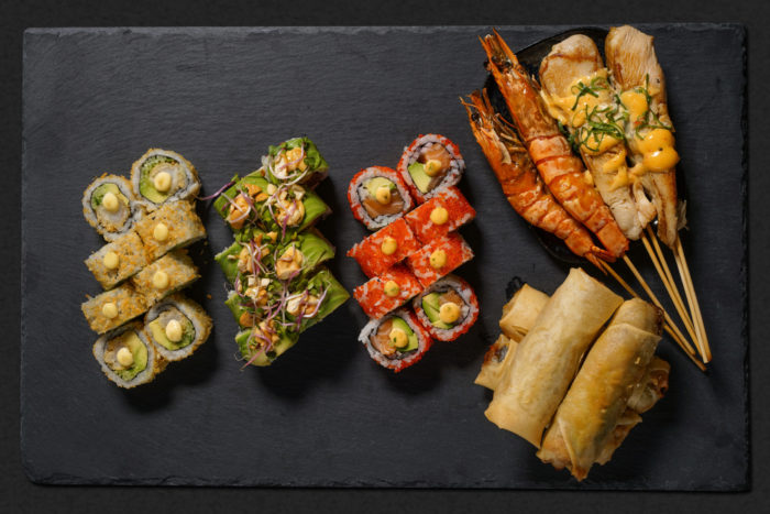8 Green Delight, 8 Honolulu, 8 Boston, 2 Kyllingebryst sticks, 2 Kongerejer sticks, 4 Hjemmelavet forårsruller