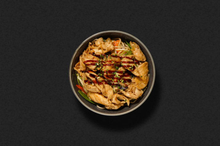 Stegte sobanudler med kylling, mix grøntsager, teriyaki sauce